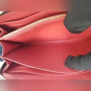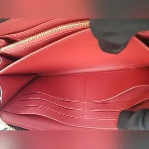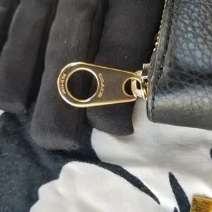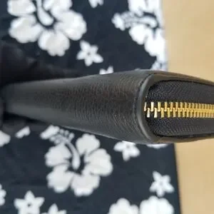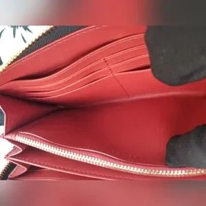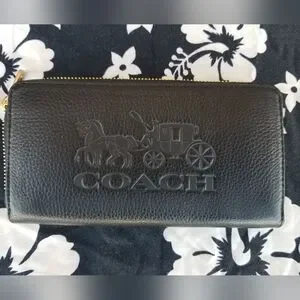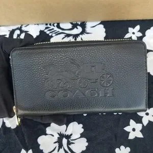 Rare Elegant black pebbled leather wallet with embossed Coach logo. Features a zip-around closure, red interior with multiple pockets. Absolutely no call outs. Pristine like new condition. 8"×4"