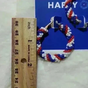 New beaded red white and blue patriotic hoop earrings. Never worn, they are approximately 1.5 inches.