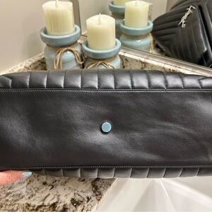 Pristine Like New Condition. Has stickers on most of the hardware. Elevate your style with this Yves Saint Laurent black quilted leather bag. Featuring a chic chain strap, this bag is perfect for any occasion. Can fit almost anything in this beautiful bag!