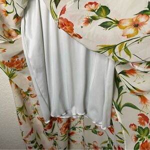 Kate and Lily floral maxi dress. This dress is white with an orange and green floral pattern.