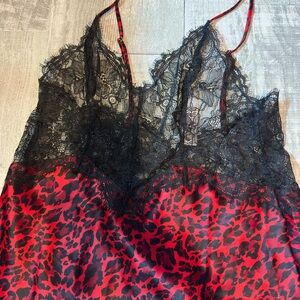 Indulge in the luxurious feel of this Victoria's Secret chemise, crafted from silky red fabric adorned with intricate black lace detailing. The adjustable straps and empire waist design ensure a perfect fit, while the romantic color combination adds a touch of elegance to your sleepwear collection.