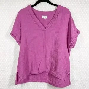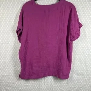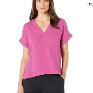 Pact Women Top Sz S Pink Double Gauze Daily Organic Cotton Short Sleeve V Neck