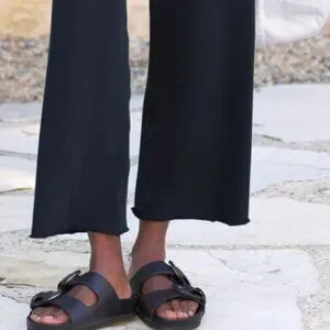 Catherine Triple Fleece cropped, wide leg, drawstring sweatpants. Contemporary silhouette with a fashion-forward feel.