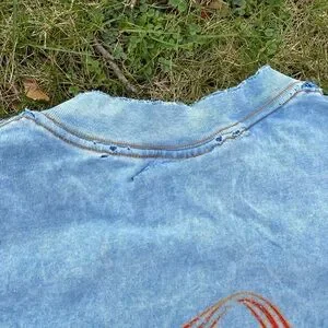 Size L but can fit an XL. Small stitch repair done very well near the back of the collar. Good “dog tooth” thrashing around neckline and a small hole on the back. Amazing fade on the AllSport tag.