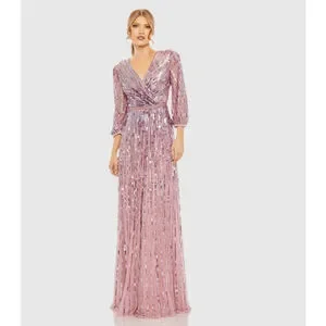 Mac Duggal Pink Sequin Long Sleeve Evening Gown