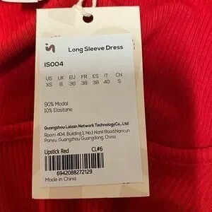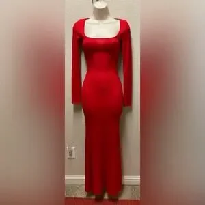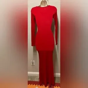 Inlyric Red Long Sleeve Ribbed Dress Loungewear Sz XS