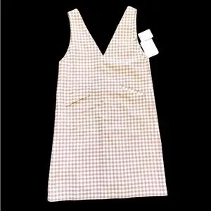NWT Japanese brand Couture Brooch sz med Stylish sleeveless dress with a mauve pink and white checkered pattern. Features a V-neck design. Working front pockets.New with tags. Measurements in pics. Bundle 3 or more items for 15% off and feel free to make a fair offer.