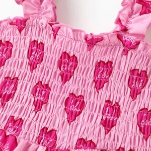 Women Barbie Valentine Heart Allover Print Sleeveless Smocking Pink Dress