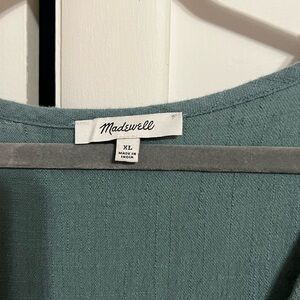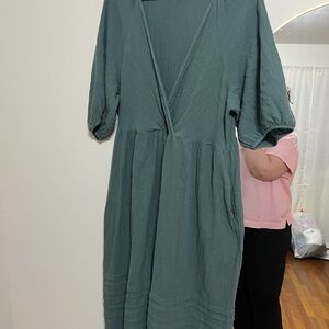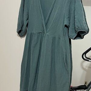 Madewell teal wrap front puff sleeve cotton dress