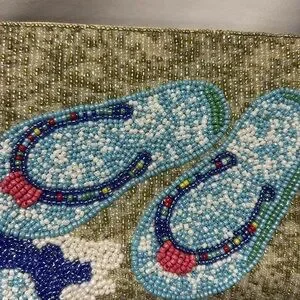 This Club Bag Flip Flop design beaded crossbody bag features a vibrant multicolors. Perfect for adding a pop of color to any outfit.