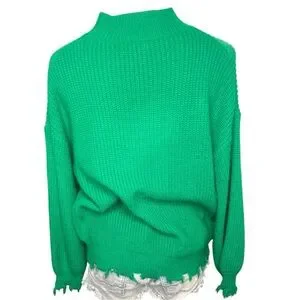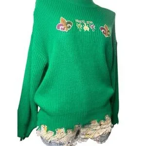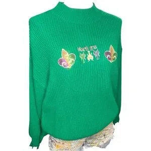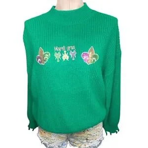 Green Mardi Gras Oversized Distressed Sweater, Size: Small