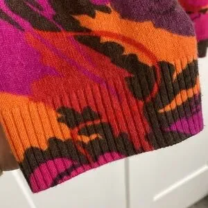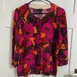 Talbots 100% Cashmere Multicolor Floral 3/4 Sleeve Cardigan Sweater. Women’s L