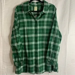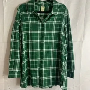 Blair Women’s Plaid Green Flannel Button Up Long Sleeve Shirt, size L