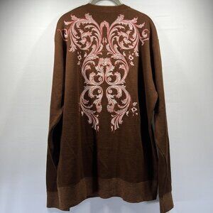 Royal Prestige Men's Pullover Sweater 2XL Brown Embroidered Thick Long Sleeve