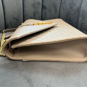 YVES SAINT LAURENT Grain De Poudre Mixed Matelasse Large Triquilt Monogram Satchel Dark Beige