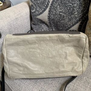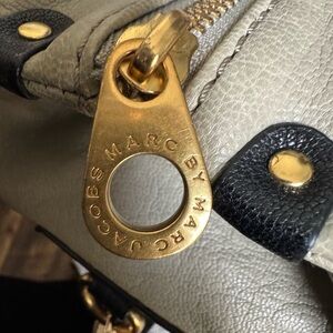 Stylish and versatile, this Marc by Marc Jacobs Preppy bag features a chic khaki/brown/black color-block. Although it was purchased pre-loved it is still in very good used condition. It is very spacious with a lightweight crinkle textured leather. Comes with a non-original strap for shoulder or crossbody wear and a detachable metro/ID card holder. It has two internal slip pockets, 1 internal zip pocket, and 2 external pockets to tuck your ID holder or phone away. This bag is perfect for on the go. Perfect for any occasion, it combines elegance with functionality.