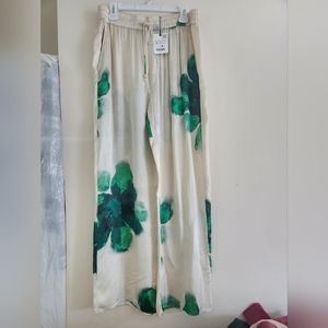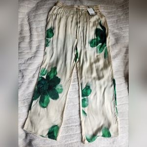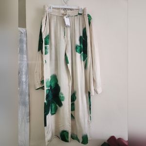 ZARA Co-ord Set Flowy Shirt & pajama Pants ZW Collection Floral Ecru/green Sz XL