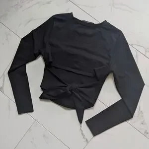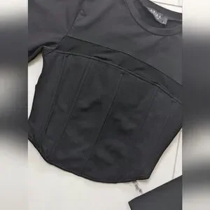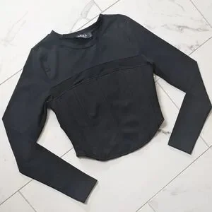 New! Akira Long Sleeve Mesh Corset Inspired Cropped Tie Back Top