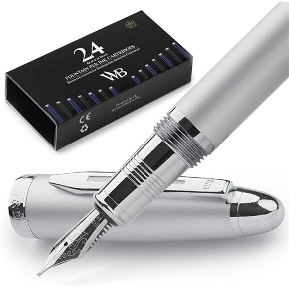 Wordsworth & Black Majesti Fountain Pen-(Silver), Luxury Case, 24K Gold Finish;