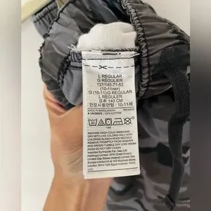 GAP kids black camo size Large (10-11) joggers. Great preowned condition. My son is not into joggers so I don’t think k he ever wore them. Draw string closure.