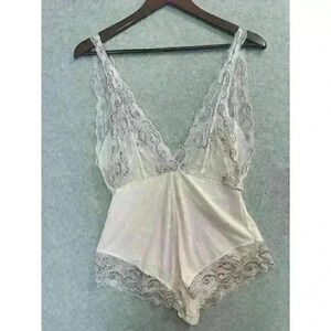 The bodysuit is lined and has a classic fit, with a baby pink color that will make you stand out. It's perfect for women who want to feel preppy and girly, while still being comfortable and stylish. This vintage piece is a must-have for any lingerie collection and is sure to make you feel confident and beautiful.