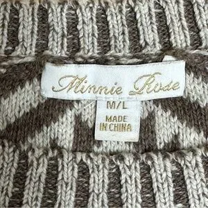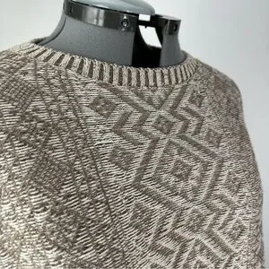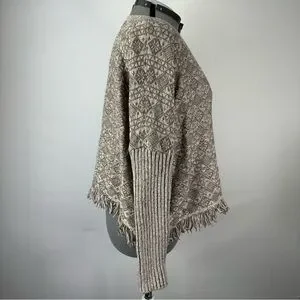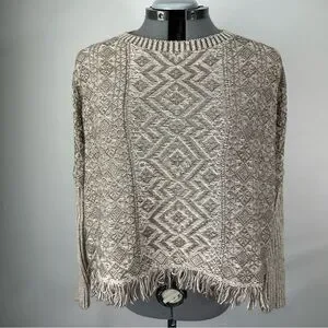 Minnie Rose Women’s Aztec Knit Fringe Cropped Sweater Size M/L