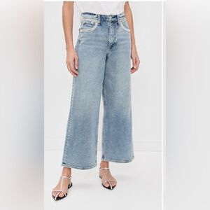 Rag & Bone Andi Embellished Ankle-Length Wide-Leg Jeans in Pacific With Jewel