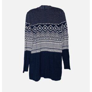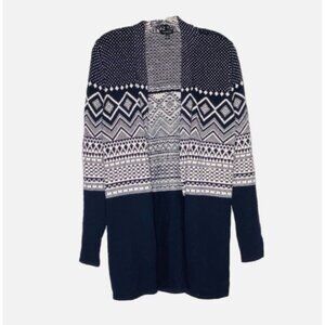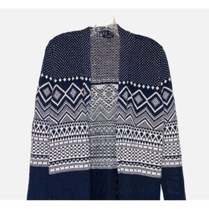 Talbots Cardigan Womens XS Navy Blue White Fair Isle Open Sweater