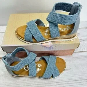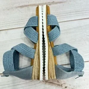Very G Blue Sadie Strappy Woven Canvas Espadrilles Sandals NEW in Box