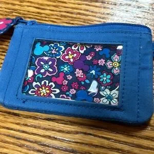 Vera Bradley x Disney Sensational Six ID zip close pouch. Blue with Vera Bradley floral print with cute little Mickey shape details. Key ring is silver Mickey shaped. I also have a lanyard in this Vera pattern. Good used condition.