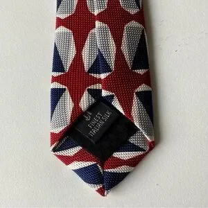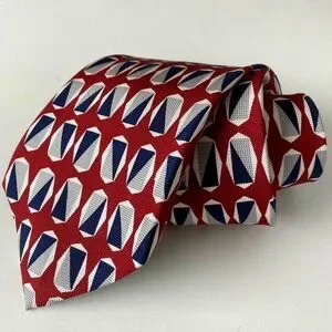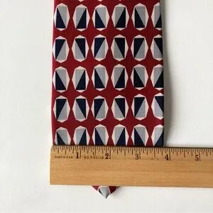 Hickey Freeman Italian Silk Necktie Tie Red Black Gray Geometric Pattern 56x3.75