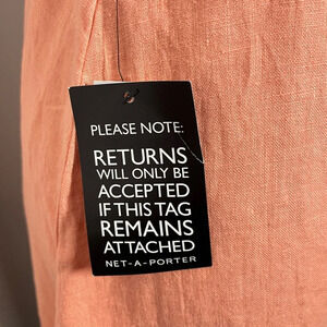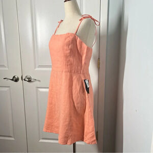 100% linen, ties at shoulder, square neckline, zipper closure back