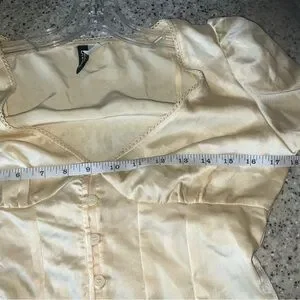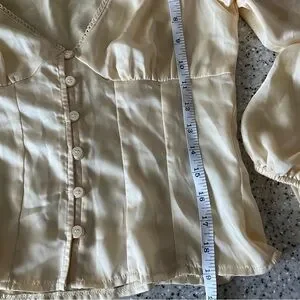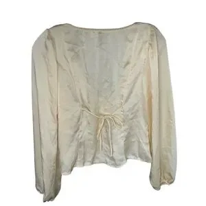 Divided Elegant Blouse Small Cream Fitted with Puff long Sleeves Vee neckline