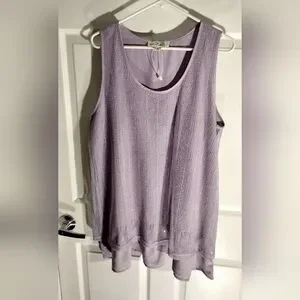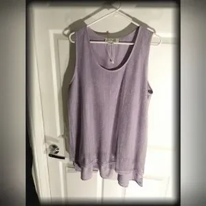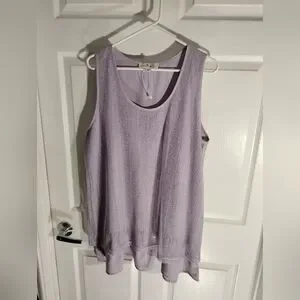 🦩SIMPLY NOELLE Plus Size Pullover Sleeveless Tunic Tank Lavender Mesh Overlay