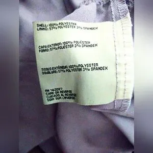 Material is: shell 100% Polyester and Lining 97% Polyester and 3% Spandex