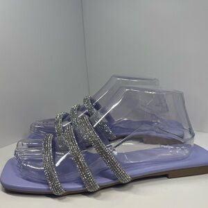 Strappy Rhinestone Lavender Purple Square Toe Women’s Sandals Size 9 New