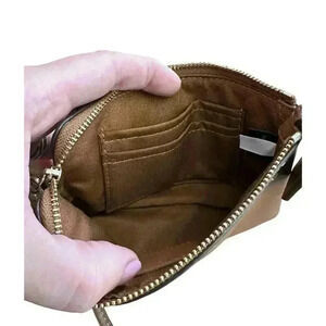 Coach Corner Zip Wristlet Brown Leather Logo Card Slots Bag Charm