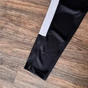 Stylish black and white track pants with a sleek design. Perfect for casual wear or workouts.