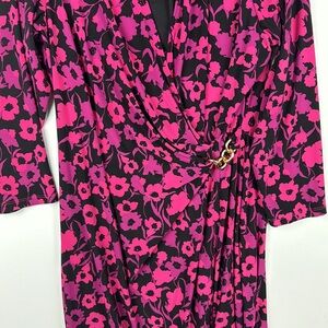 Anne Klein size XL faux wrap dress long sleeves colors of Black Purple Pink Classy Gold Chain accent at the gathered waist