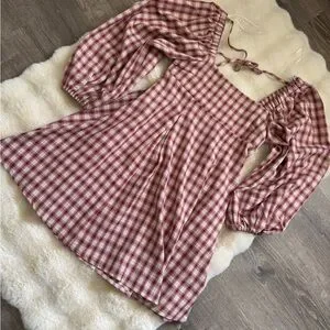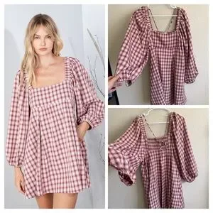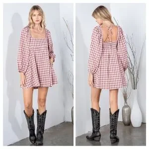 REVEROF Plaid Babydoll Dress With Smocking Back Detail,NWT