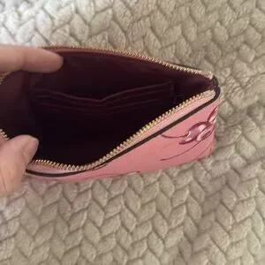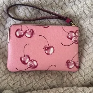 Coach cherry corner zip pink wristlet/wallet! See last two pictures for very very faint flaws.