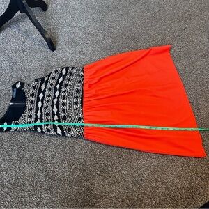 THML By Anthropologie Black and Orange Halter Midi Dress, Size Large.