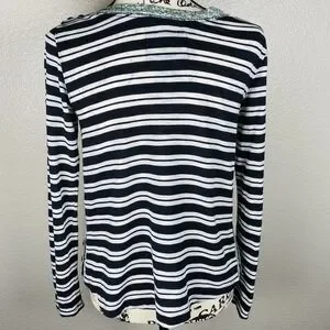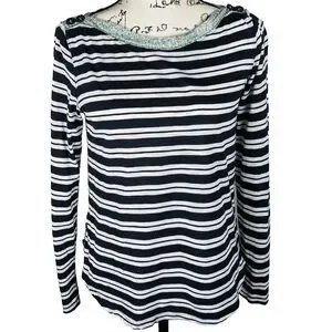 Anthropologie 9-H15 STCL Sz S Long Sleeve Knit Top Black White Striped Boat Neck