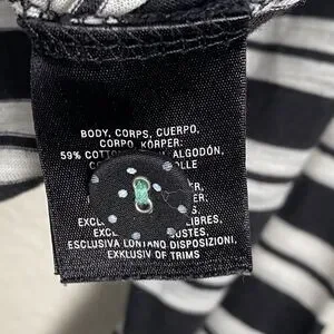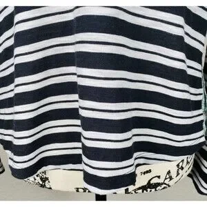 * Color: black and white horizontal stripes; Boat Neck trim green with floral detail