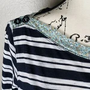 Anthropologie 9-H15 STCL Sz S Long Sleeve Knit Top Black White Striped Boat Neck Tunic