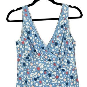Boden Dress Sz 12 R Empire Waist Crossover V-Neck 100% Cotton Blue Cherr…