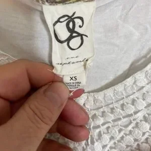 This is so light and pretty! It's a really versatile piece to add to your wardrobe, with a sheer print overlay and lined in white. It measures 21" laid flat at underarms, 26" in length. In very good pre-owned condition. Normal wear and tear noted, but no flaws or damage. Please review pictures and feel free to ask any questions or for more pictures prior to purchasing.