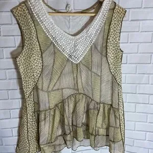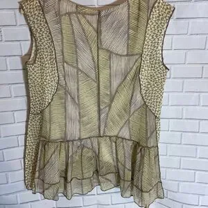 Anthro One September Tan/Yellow Print Top Sz XS