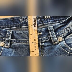 Stylish boot cut jeans. Classic blue denim. Signature stitching on pockets. Comfortable fit.