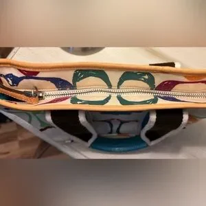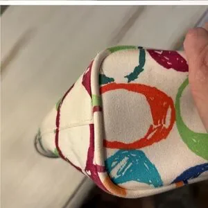 This stylish Vintage Coach tote bag features a vibrant multicolor design on durable canvas.
